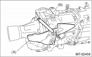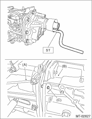 20. Temporarily install the transfer case assembly. 21. Install the shift lever COMPL, then insert the remover or similar tool instead of straight pin.