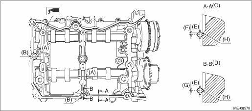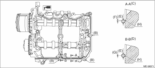 4. Apply liquid gasket to the mating surface of cam carrier LH as shown in the figure. NOTE: • Before applying liquid gasket, degrease the old liquid gasket seal surface of the cylinder head LH and cam carrier LH. • Install within 5 min. after applying liquid gasket. Liquid gasket: THREE BOND 1217G (Part No. K0877Y0100), THREE BOND 1217H or equivalent Liquid gasket applying diameter: 3.0±0.5 mm (0.1181±0.0197 in)