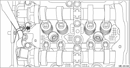 6. Set the part so that the intake manifold is on the upper side. 7. Install the cam sprocket LH. Cam Sprocket > INSTALLATION NOTE: This procedure is required only when the cam carrier LH is removed for disassembly. 8. Check the cam clearance. Cam Clearance > INSPECTION 9. Install timing chain LH. Timing Chain Assembly > INSTALLATION 10. Secure the engine harness to the cam carrier LH with a clip.