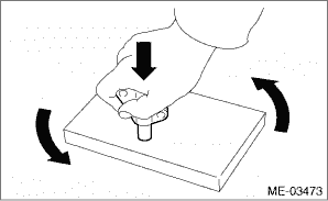 NOTE: • Be careful that the foreign matter is not into or onto the assembled component during installation. • Apply engine oil to all component parts of the timing chain. 1. Prepare to attach the chain tensioner. (1) Insert the screw, spring pin and plunger into the tensioner body. (2) As shown in the figure, turn the rubber mat counterclockwise while holding the chain tensioner from above by hand. NOTE: Degrease the contact surface between the plunger head and rubber mat, so that they do not slip.