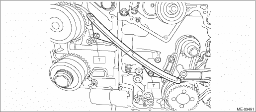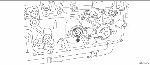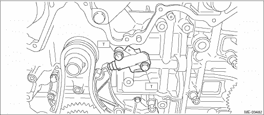(3) Insert the stopper pin into the hole on the chain tensioner body. 2. Align the position of oil pump shaft knock pin to six o’clock position as shown in the figure.