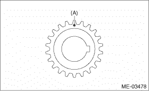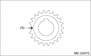 6. Using ST, align the “Top mark” on crank sprocket to twelve o’clock position as shown in the figure. NOTE: • The #1 piston is positioned at TDC. • Do not rotate the crankshaft and cam sprocket before completing timing chain installation. • At this time, crank sprocket key is at three o’clock position.