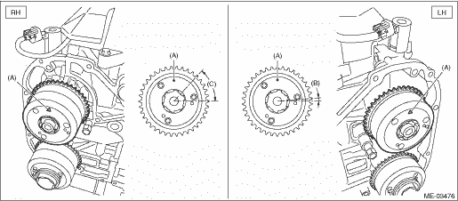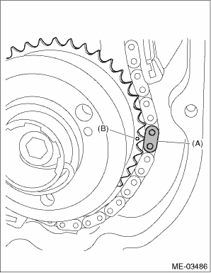 (2) Match the timing mark of exhaust cam sprocket (LH) to the timing chain mark (blue).