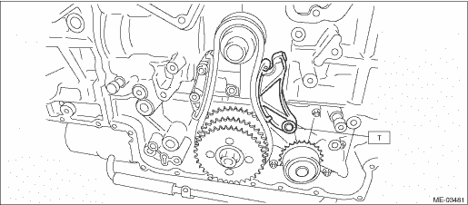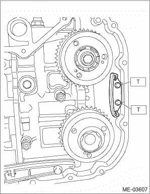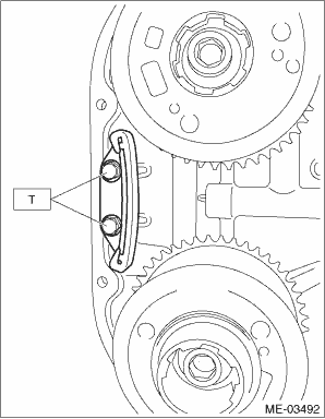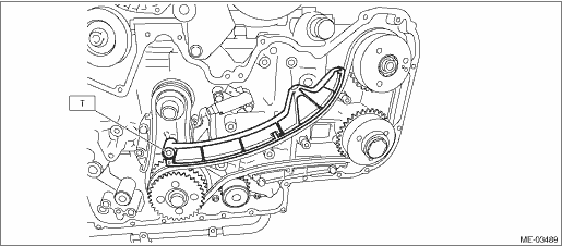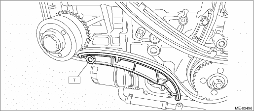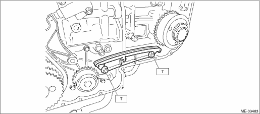 11. Install the chain guide (LH). Tightening torque: 16 N·m (1.6 kgf-m, 11.8 ft-lb)