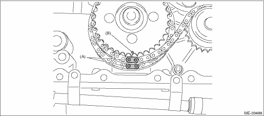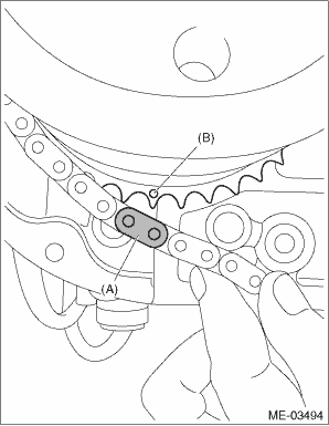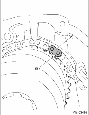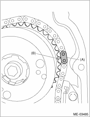 (4) Match the timing mark of idler sprocket to the timing chain mark (gold).