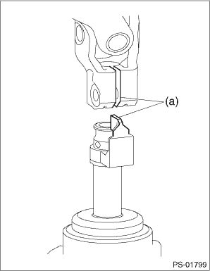 (3) Install the universal joint assembly - steering to the serrations of the gearbox assembly by matching the alignment marks that have been marked when removing and the cutout portion of the guide (a).