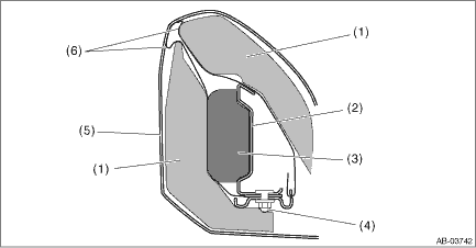 CAUTION: • Refer to “CAUTION” of “General Description” before handling the airbag system components. General Description > CAUTION • Make sure that the side airbag module is installed as shown in the figure.