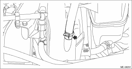 1. Warm up the engine. 2. Disconnect the brake booster vacuum hose from the intake manifold assembly.