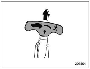 To open the trunk lid from inside the trunk, pull the yellow handle as indicated by the arrow on the handle. This operation unlocks the trunk lid. Then, push up the lid. The handle is made of material that remains luminescent for approximately an hour in the dark trunk space after it is exposed to ambient light even for a short time.