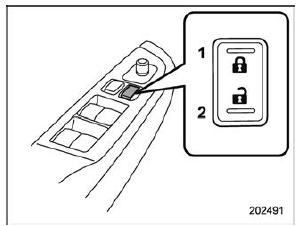 All doors and the rear gate (Outback) can be locked and unlocked by the power door locking switches located at the driver's side and the front passenger's side doors. To lock the doors, press the front side of the switch. To unlock the doors, press the rear side of the switch. When you close the doors after you set the door locks, the doors remain locked. NOTE Make sure that you do not leave the key inside the vehicle before locking the doors from the outside using the power door locking switches. Key lock-in prevention function This function prevents the doors from being locked under the following conditions.