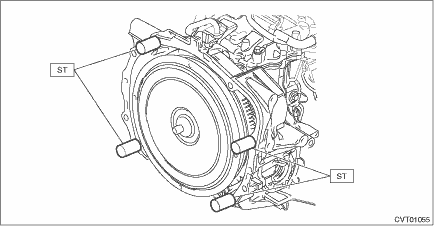 1. Clean the transmission exterior. 2. Attach the ST on the transmission assembly.