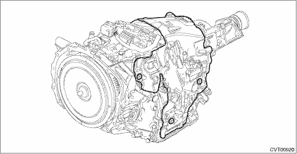 5. Place the transmission assembly on end. 6. When completely overhauling the transmission, refill approx. 10 L (2.6 US qt, 8.8 Imp qt) of CVTF through the transmission right side plug, and install the plug. Then, install the transmission case cover. CAUTION: Always use specified CVTF. Using other fluid will cause malfunction. General Description > SPECIFICATION NOTE: Use a new gasket. Tightening torque: 50 N·m (5.1 kgf-m, 36.9 ft-lb)