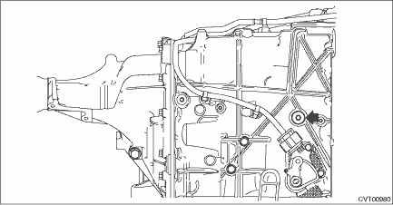 3. Remove the torque converter assembly. Torque Converter Assembly 4. Remove the transmission case cover on the transmission upper side. NOTE: Install using the following tightening torque. Tightening torque: 8 N·m (0.8 kgf-m, 5.9 ft-lb)