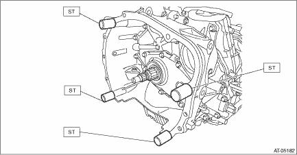 1. Clean the transmission exterior. 2. Remove the torque converter assembly. Torque Converter Assembly > REMOVAL 3. Attach the ST on the transmission.
