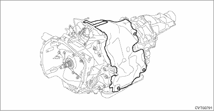 4. Remove the transmission cover on the transmission upper side. NOTE: Install using the following tightening torque. Tightening torque: 8 N·m (0.8 kgf-m, 5.9 ft-lb)
