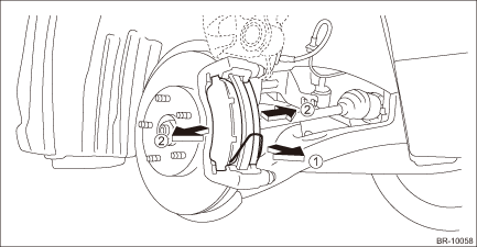 3. Remove the support - front disc brake. (1) Remove the pad - disc brake front.