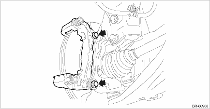 (2) Remove the mounting bolts, and then remove the support - front disc brake.