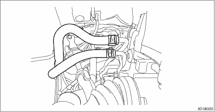 4. Lower the vehicle. 5. Remove the battery and battery box. Battery > REMOVAL 6. Remove the front bumper. Front Bumper > REMOVAL 7. Remove the headlight assembly LH. Headlight Assembly > REMOVAL 8. Remove the CVTF cooler (air cool) inlet hose and the CVTF cooler (air cool) outlet hose.