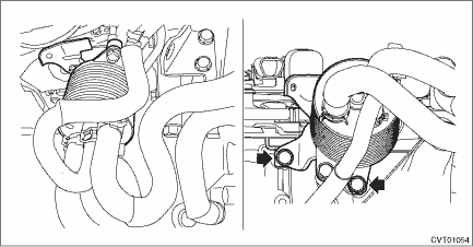 16. Remove the CVTF cooler (with warmer feature), and fix it on the vehicle with a string.