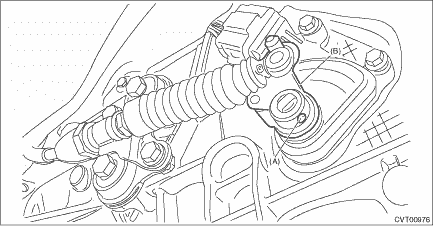1. Disconnect the ground terminal from battery sensor. NOTE 2. While pressing the shift lock release button, shift the select lever to the “N” range. 3. Lift up the vehicle. 4. Remove the center exhaust pipe. Center Exhaust Pipe > REMOVAL 5. Remove the snap pin and washer.