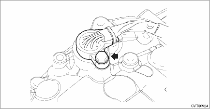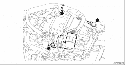 3. Remove the air breather hose. Air Breather Hose > REMOVAL 4. Remove the transmission hanger and transmission radio ground cord. 5. Disconnect the harness connector from the turbine speed sensor, primary speed sensor, secondary speed sensor and secondary pressure sensor.