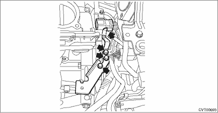 9. Remove the harness stay from the transmission.