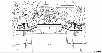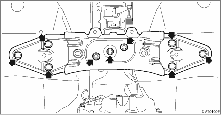 23. Lift up the vehicle. 24. Remove the front under cover. Front Under Cover > REMOVAL 25. Remove the front exhaust pipe. Front Exhaust Pipe > REMOVAL 26. Remove the center exhaust cover.