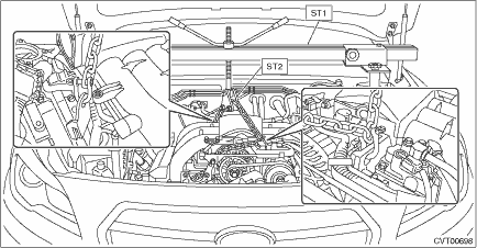 16. Attach the ST to the engine. Tightening torque: 19 N·m (1.9 kgf-m, 14.0 ft-lb)