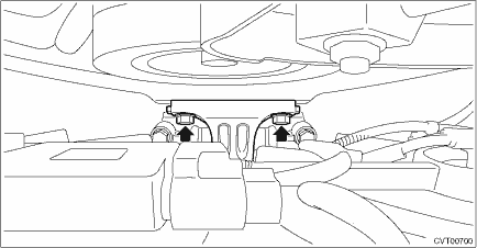 31. Drain differential gear oil. Differential Gear Oil > REPLACEMENT 32. Remove the CVTF CVT inlet hose and CVTF CVT outlet hose.