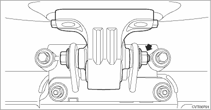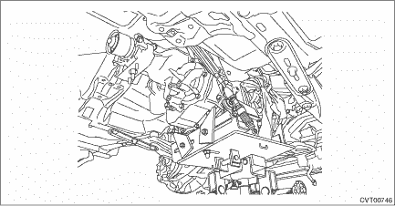 28. Remove the CVTF drain plug to drain CVTF. CVTF > REPLACEMENT 29. Remove the snap pin and washer from shifter arm and remove the select cable from shifter arm.