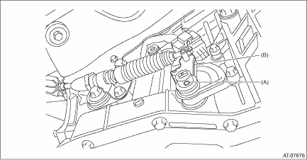 1. Disconnect the ground terminal from battery sensor. NOTE 2. While pressing the shift lock release button, shift the select lever to the “N” range. 3. Lift up the vehicle. 4. Remove the front exhaust pipe. Front Exhaust Pipe > REMOVAL 5. Remove the harness stay from transmission.