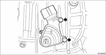 8. Remove the inhibitor harness connector from inhibitor switch. 9. Remove the two inhibitor switch securing bolts.