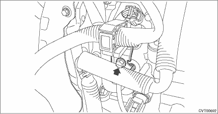 2. Disconnect the ground terminal from battery sensor. NOTE 3. Loosen the clamp (A) which connects the air intake boot assembly. 4. Loosen the bolt (B) which secures the air intake boot assembly to the collector cover bracket.