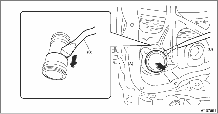 15. Remove the CVTF pipe using a tire lever etc. NOTE: Remove by hooking the stepped portion of CVTF pipe with a tire lever etc.