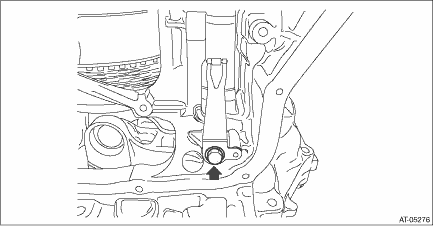 1. Remove the transmission assembly from the vehicle. Automatic Transmission Assembly > REMOVAL 2. Remove the oil pan and control valve body. Control Valve Body > REMOVAL 3. Remove the inhibitor switch. Inhibitor Switch > REMOVAL 4. Remove the spring pin. NOTE: Prevent the spring pin from dropping in the transmission using paper towel etc.