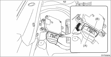 1. Disconnect the ground terminal from battery sensor. NOTE 2. Remove the air cleaner case. Air Cleaner Case > REMOVAL 3. Move the lock lever in the arrow direction while pressing the lock button, and disconnect the connector.