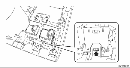 1. Disconnect the ground terminal from battery sensor. NOTE 2. Remove the cover - shift lever. Console Box > REMOVAL 3. Remove the X mode switch from the cover - shift lever.