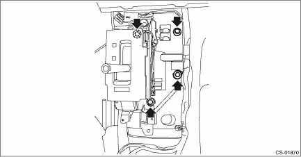 1. Shift the select lever to “N” range. 2. Disconnect the ground terminal from battery sensor. NOTE 3. Lift up the vehicle. 4. Remove the center exhaust pipe. (2.5 L model) Center Exhaust Pipe > REMOVAL 5. Remove the front exhaust pipe and rear exhaust pipe. (3.6 L model) Front Exhaust Pipe > REMOVAL Rear Exhaust Pipe > REMOVAL 6. Remove the center exhaust cover.