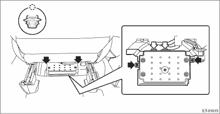 NOTE: Remove the power amplifier assembly after sliding the passenger’s seat back and forth as necessary. 1. Disconnect the ground terminal from battery sensor. NOTE 2. Remove the power amplifier - assembly. (1) Remove the harness clip, and disconnect each connector. (2) Remove the nut and remove the power amplifier - assembly.