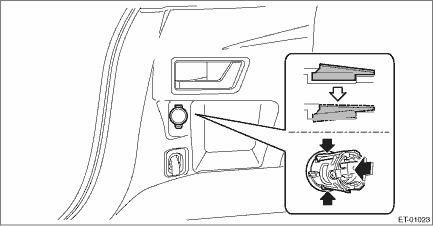2. LUGGAGE ROOM 1. Disconnect the ground terminal from battery sensor. NOTE 2. Remove the trim panel - rear apron LH. Rear Quarter Trim > REMOVAL 3. While releasing the claw inside, press it in from the rear to remove the socket assembly.