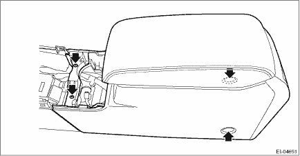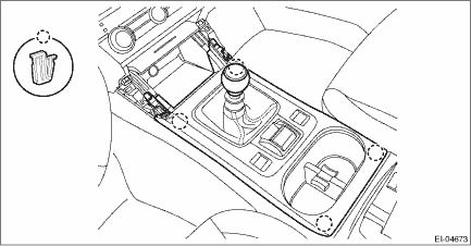 3. Remove the cover assembly - front. (1) Remove the shift knob. (MT model) (2) Pull up the cover assembly - front, and release the clips. (3) Disconnect the connectors, and remove the cover assembly - front.