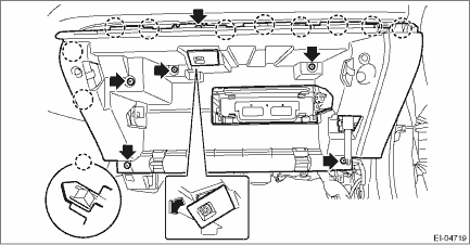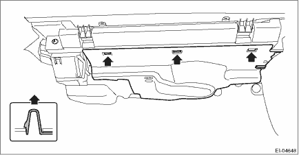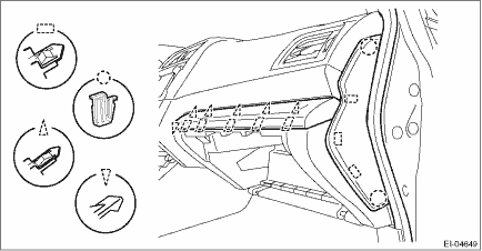 (2) Remove the clips, and remove the cover - instrument panel side RH. (3) Release the clips, and remove the ornament - panel assembly passenger.