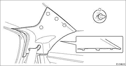 4. Remove the clips, and remove the trim panel - rear pillar UPR. NOTE: Remove the seat belt from the opening.