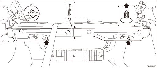 1. Disconnect the ground terminal from the battery sensor, and wait for at least 60 seconds before starting work. NOTE 2. Remove the rear seat cushion assembly. Rear Seat > REMOVAL 3. Remove the side pad assembly - backrest and the trim panel - rear pillar UPR on the left and right sides. Rear Quarter Trim > REMOVAL 4. Remove the bolts, and remove the lower anchor of the seat belt - rear shoulder CTR.