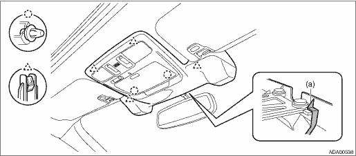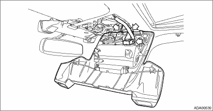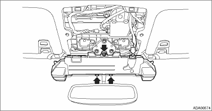 NOTE: For models with sunroof, disconnect the sunroof switch connector. 4. Remove the stereo camera. (1) Disconnect the connector. (2) Remove the nuts, and then remove the stereo camera.