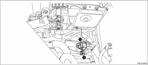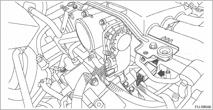 (2) Remove the throttle body from the intake manifold. Throttle Body > REMOVAL NOTE: Do not disconnect the inlet and outlet hoses of engine coolant. (3) Remove the engine harness connector.