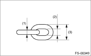 (2) Attach the shackle to the both ends of chain sling. CAUTION: • Be sure to use chain slings that satisfy the following requirements: • Length: 0.8 — 1 m (2.6 — 3.3 ft) • Load capacity: 1.2 t (2646 lb) or more • Wire diameter: 6 mm (0.24 in) or 6.3 mm (0.25 in) • Internal width: 8.5 mm (0.33 in) or more • External width: 23.5 mm (0.93 in) or less