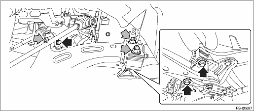 1. Lift up the vehicle, and then remove the front wheels. 2. Remove the under cover - front. Front Under Cover > REMOVAL 3. Remove the front arm. (1) Pull out the cotter pin (a). (2) Remove the castle nut (b) and bolt. (3) Extract the front arm (c) from the housing assembly - front axle. CAUTION: Use a tool appropriate to the structure, and be careful not to damage the boot of the joint while removing. The boot may be damaged depending on the tool used. Preparation tool: Tie-rod ball joint puller
