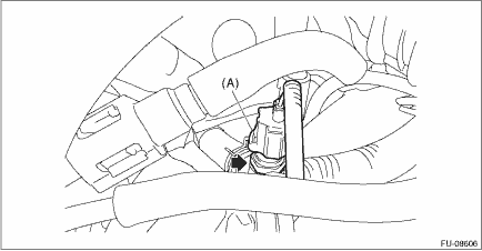 1. Disconnect the ground terminal from battery sensor. NOTE 2. Drain engine coolant. Engine Coolant > REPLACEMENT 3. Disconnect the connector (A) from the engine coolant temperature sensor, and remove the engine coolant temperature sensor.