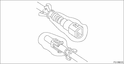 (2) To prevent from damaging or entering foreign matter, wrap the pipes and quick connectors with plastic bag etc. CAUTION: When reusing the retainer, do not disconnect the retainer from the connector.